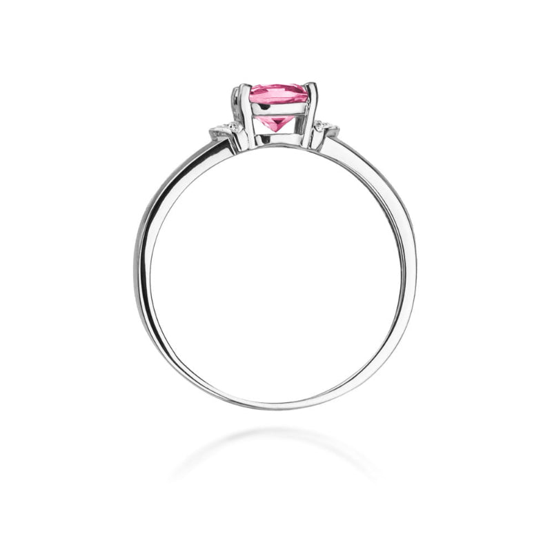 Balto aukso sužadėtuvių žiedas su 0.65 ct rožiniu topazu ir deimantais BGBE