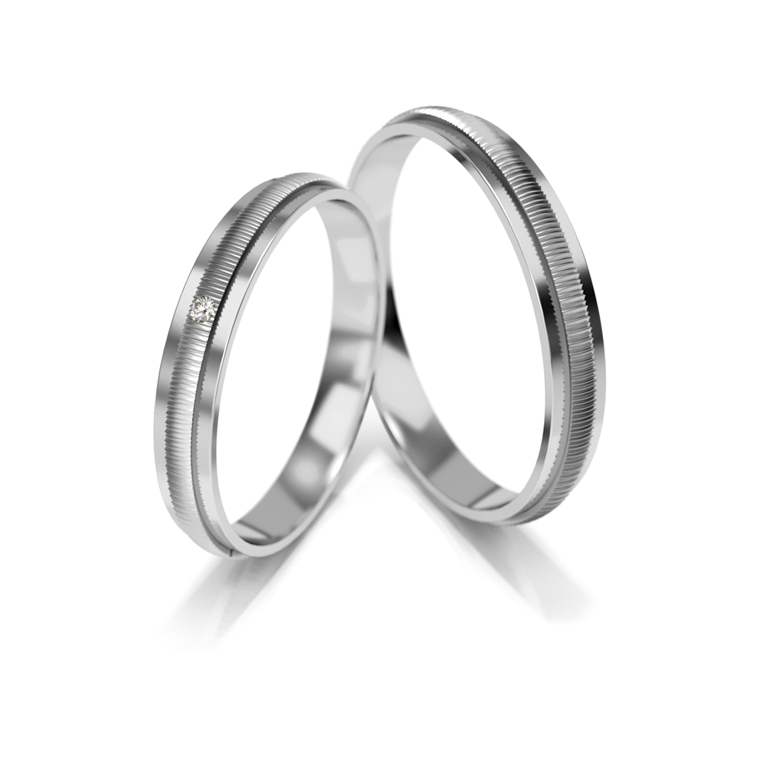 Minimalistinis dizainas atskleidžia klasikinę estetiką – švelniai profiliuotas paviršius suteikia žiedams rafinuotumo, o baltosios juostos faktūra subtiliai žaidžia šviesa.