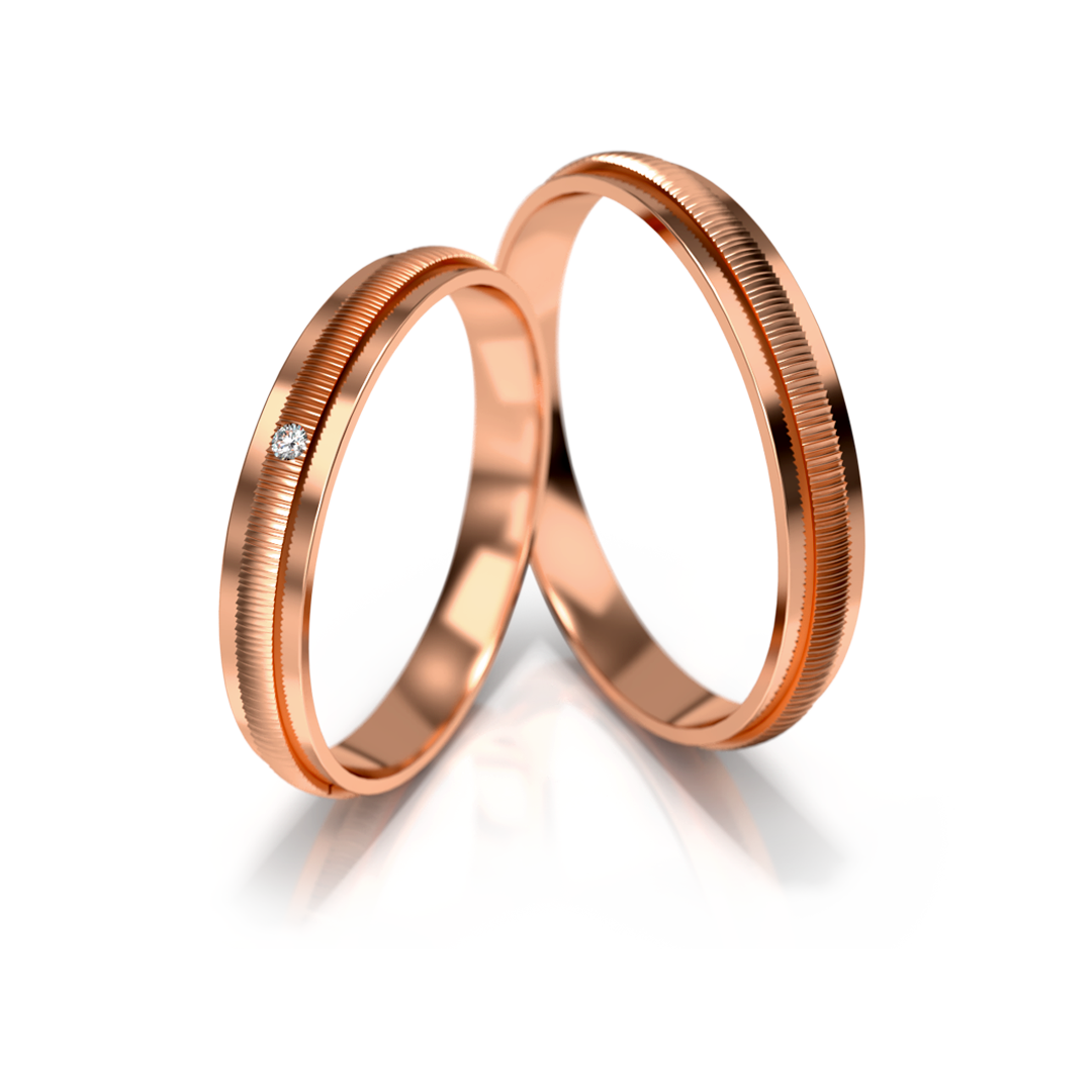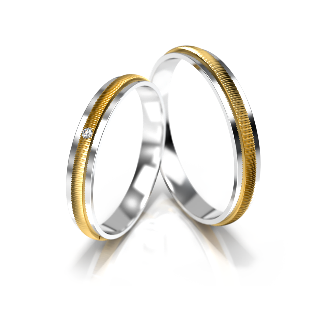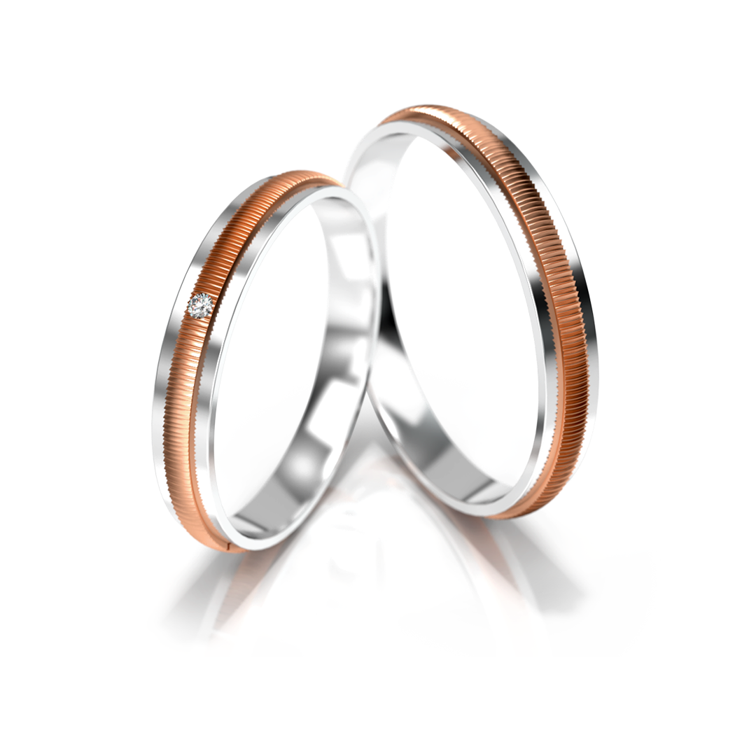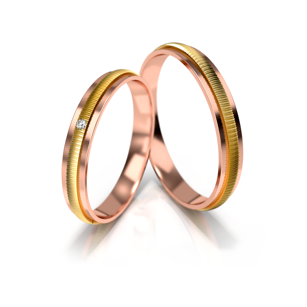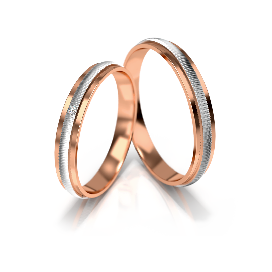 Vestuviniai žiedai – dviejų spalvų auksas su deimantu, 3 mm pločio