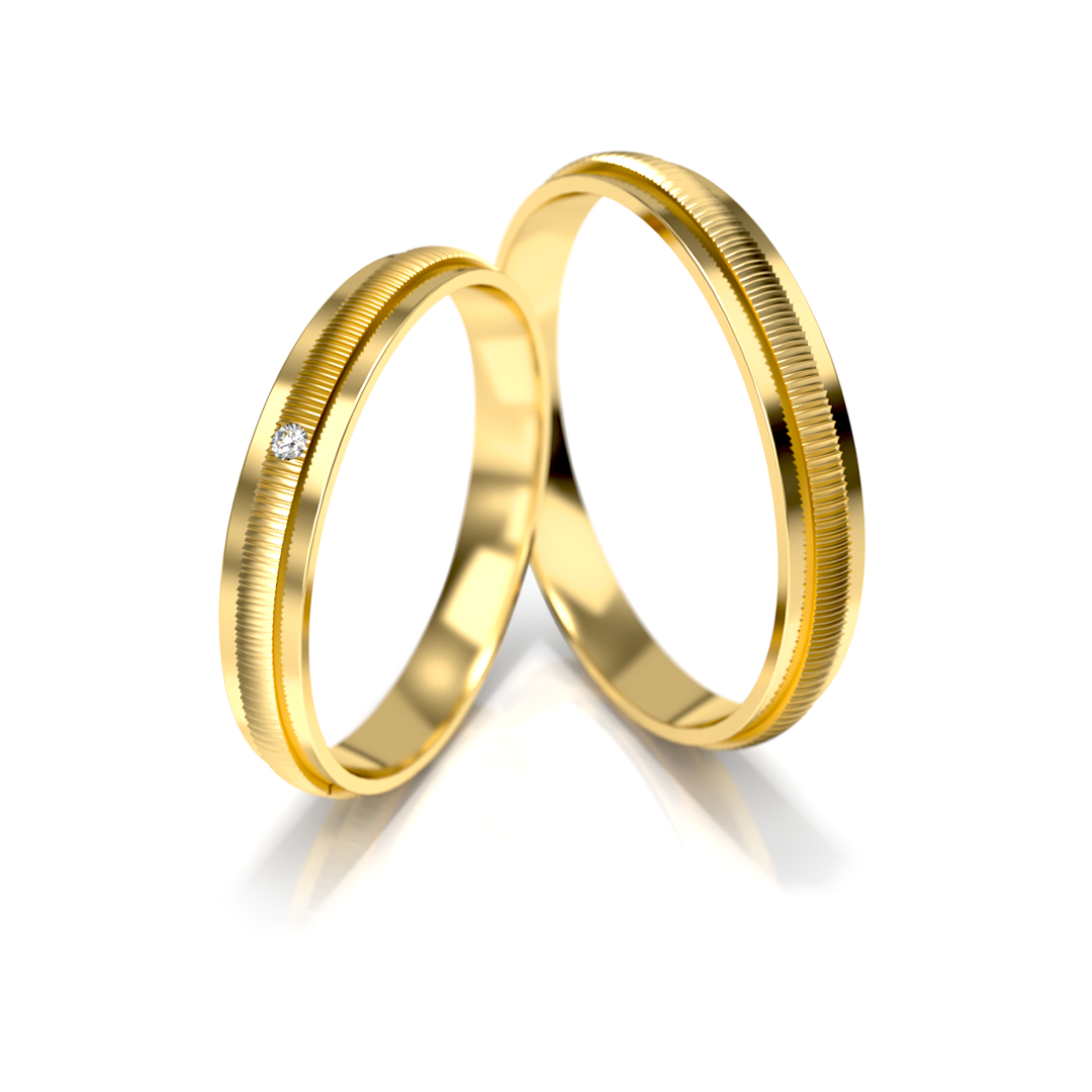 Vyriškas žiedas išlieka solidus ir santūrus, tačiau harmoningai dera su moteriškuoju, sukuriant išbaigtą porą.
