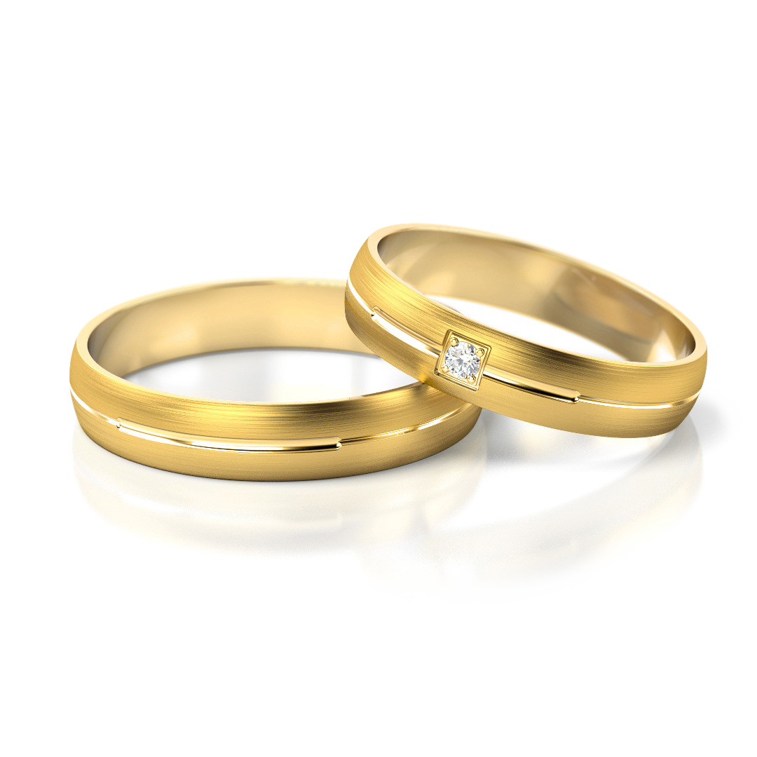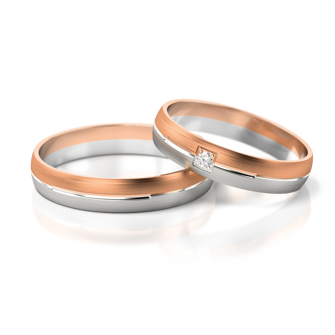 Vestuviniai žiedai – dviejų spalvų auksas su deimantu, 4 mm pločio