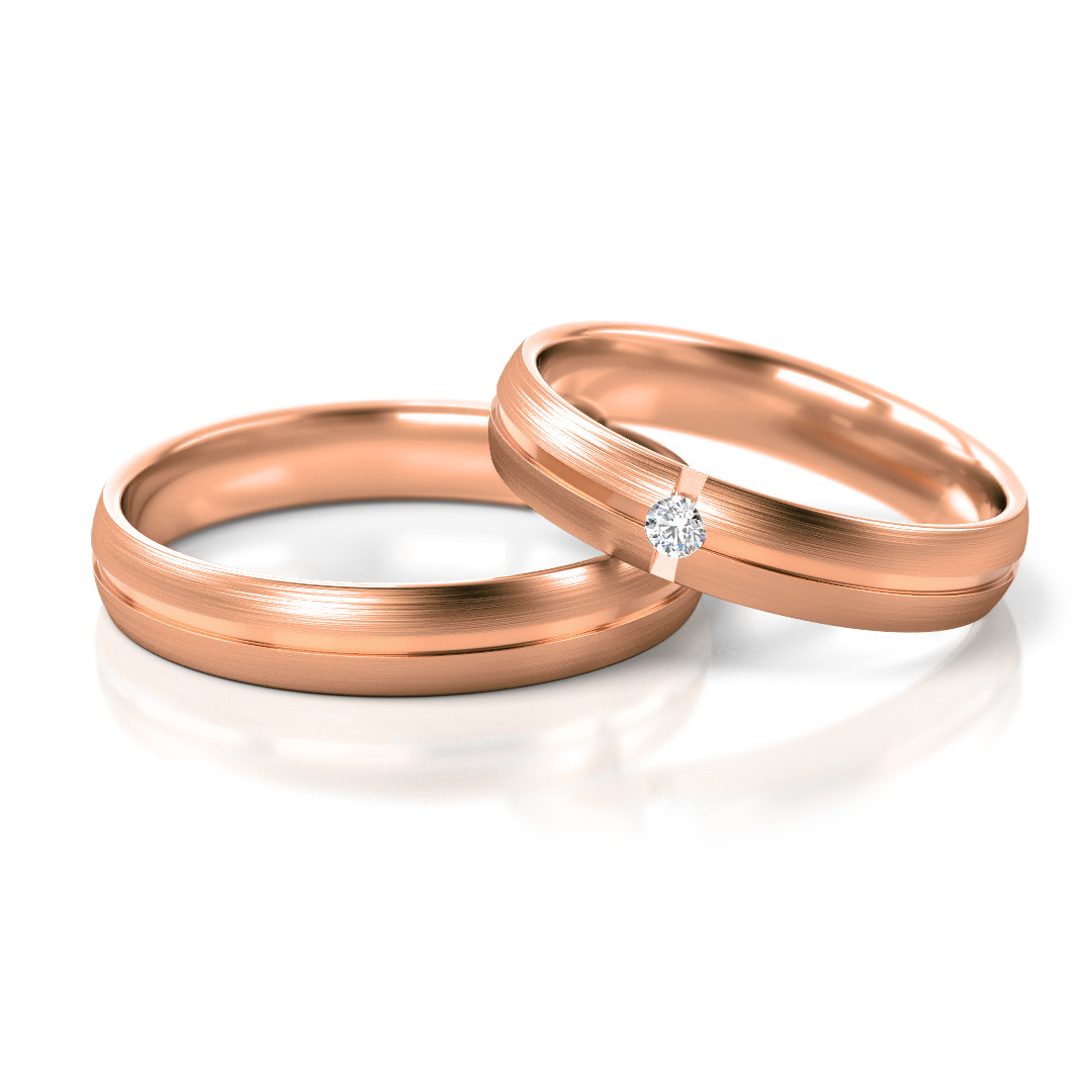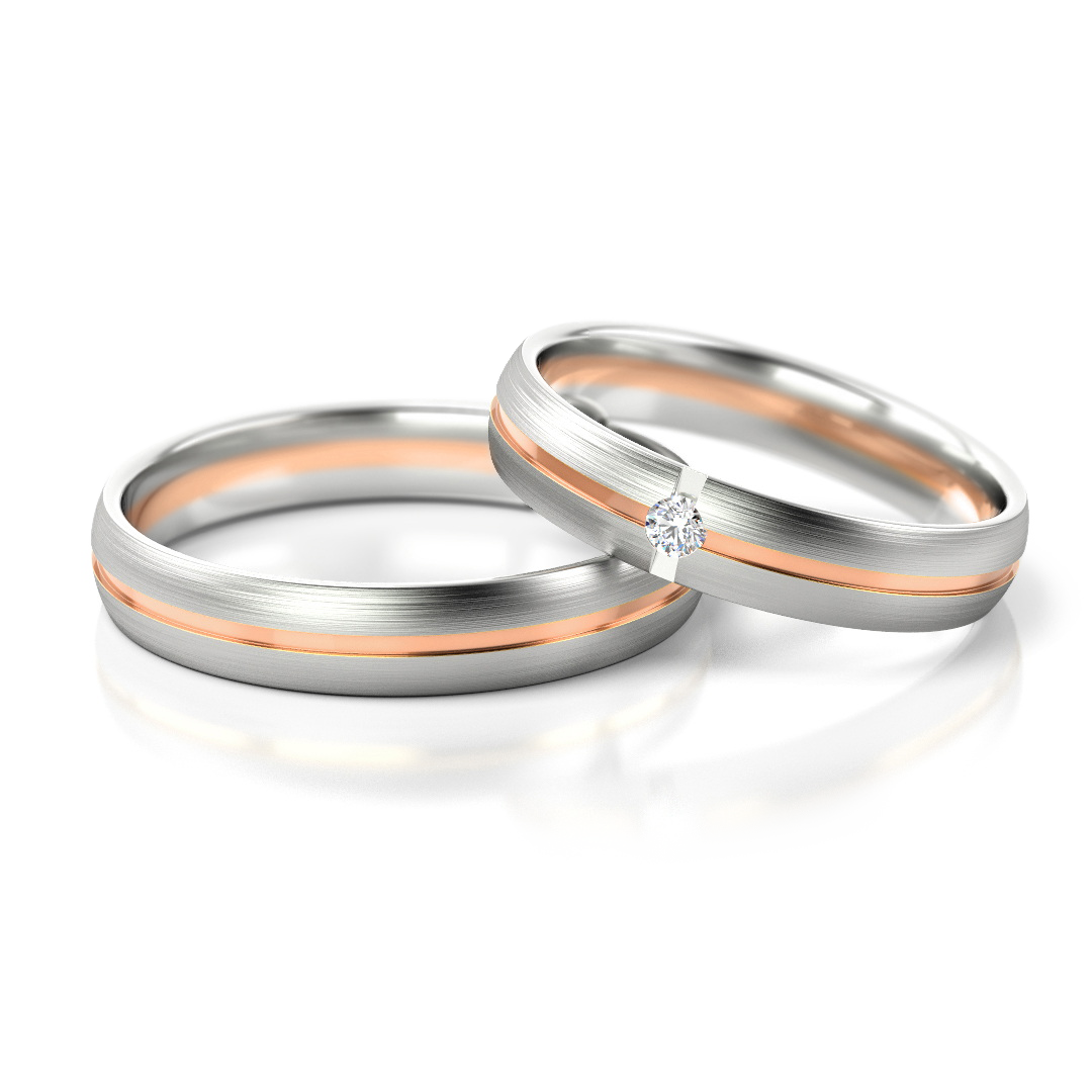Vestuviniai žiedai – baltas ir geltonas auksas su deimantu, 4 mm pločio