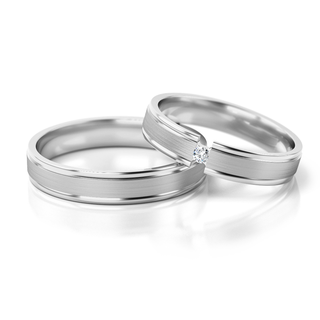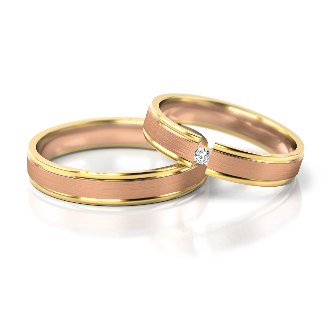 Vestuviniai žiedai geltono ir balto aukso su deimantu, 4 mm pločio
