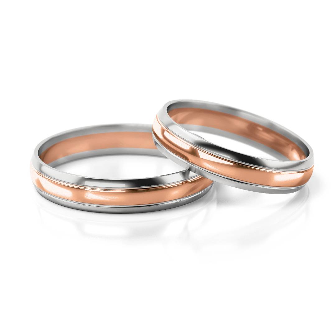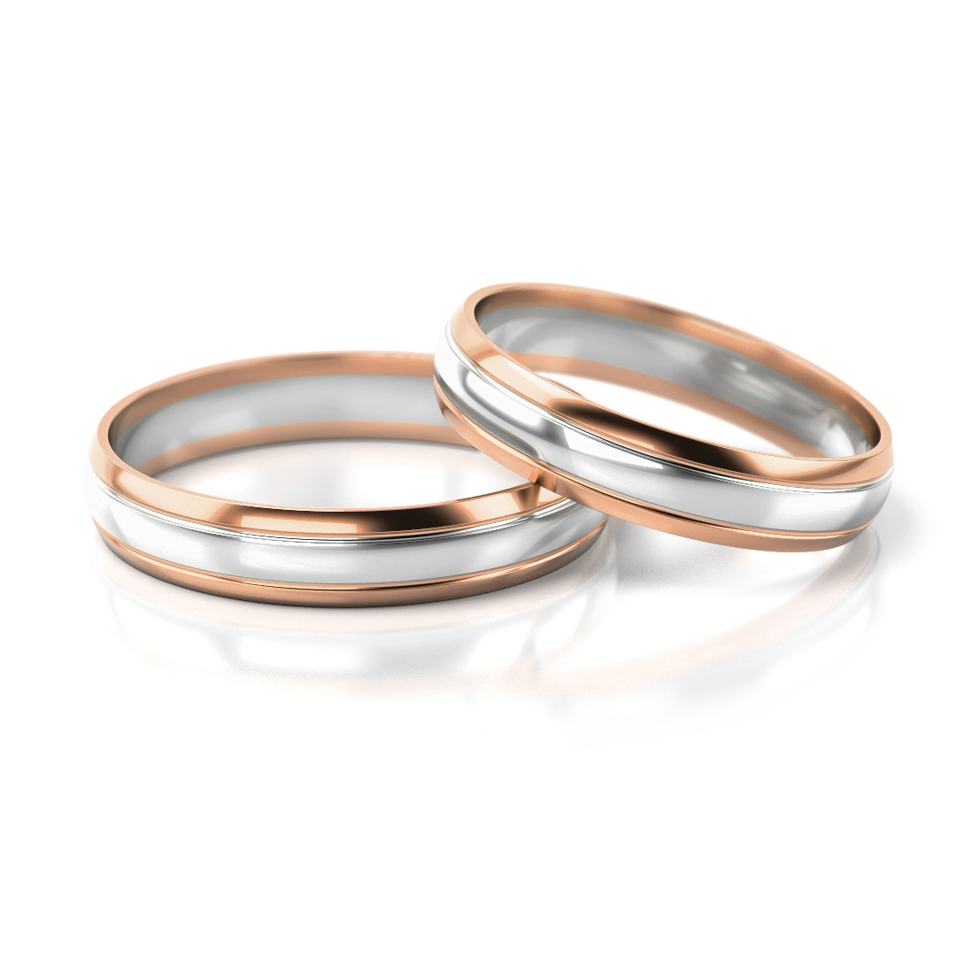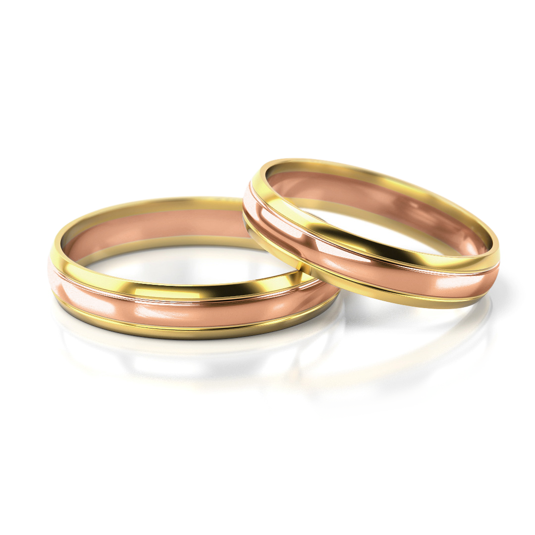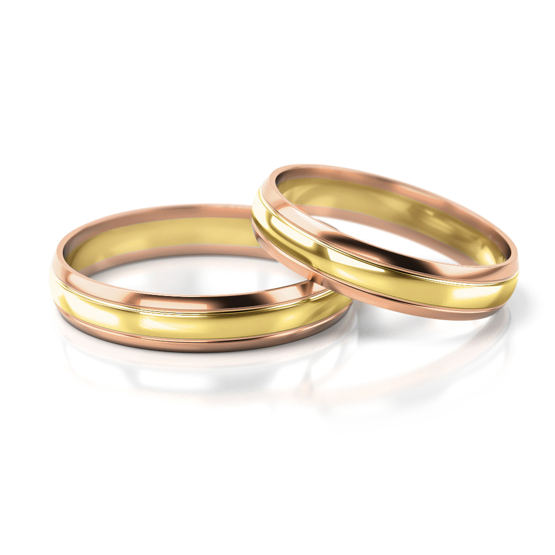 Vestuviniai žiedai – dviejų spalvų auksas, 4 mm pločio