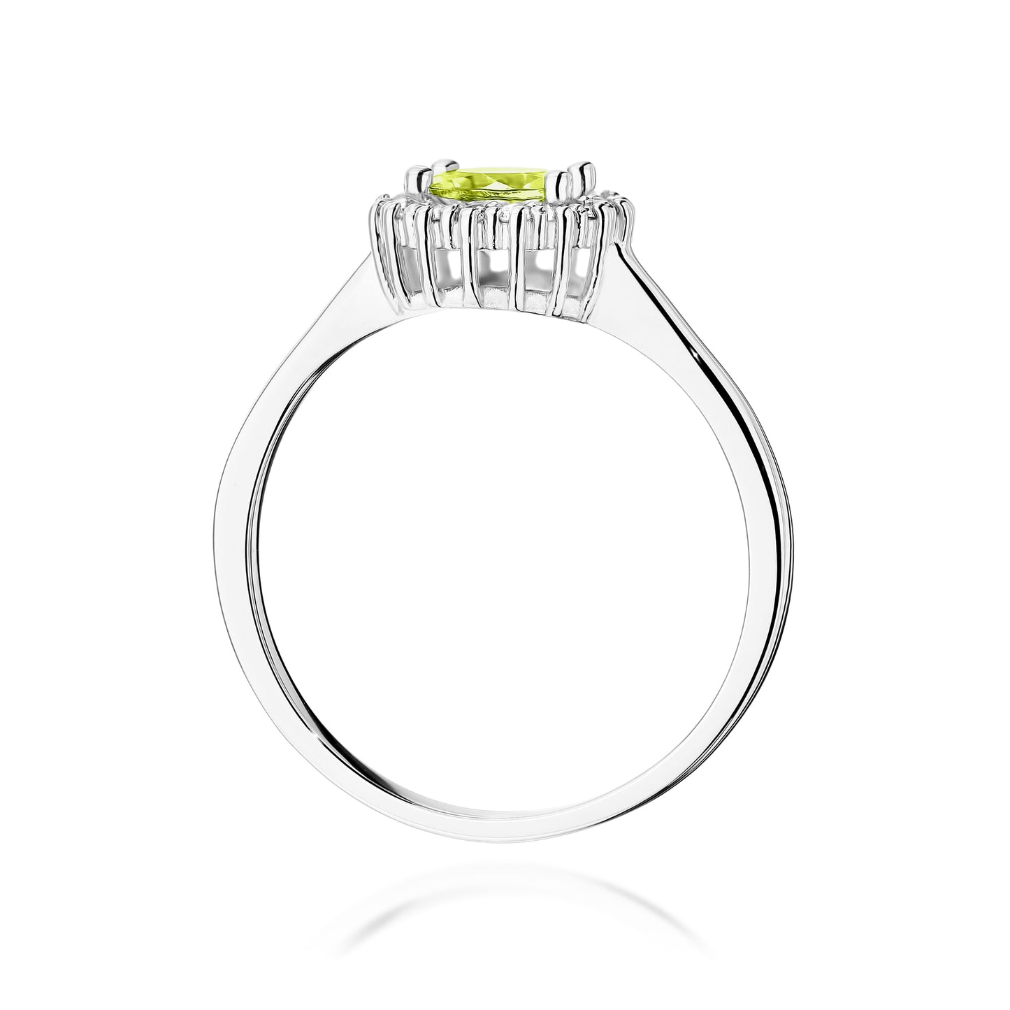 Balto aukso žiedas su 0.6 ct peridotu (olivinu) ir deimantais G572
