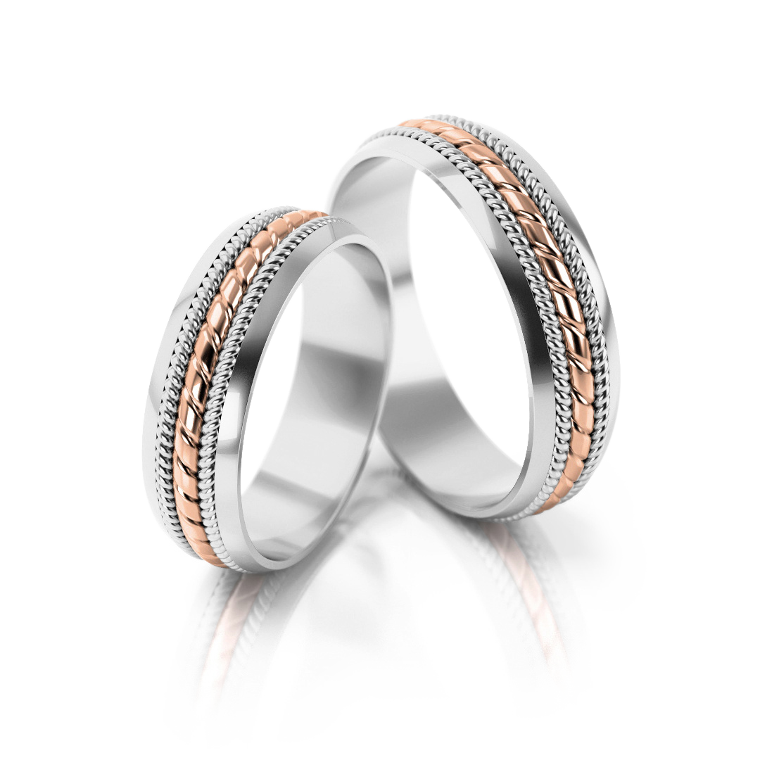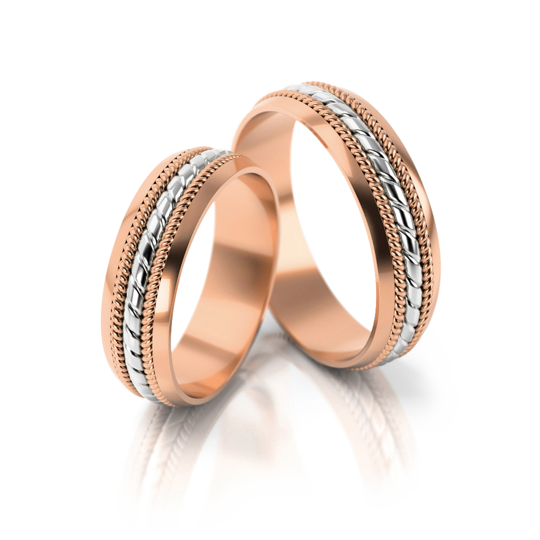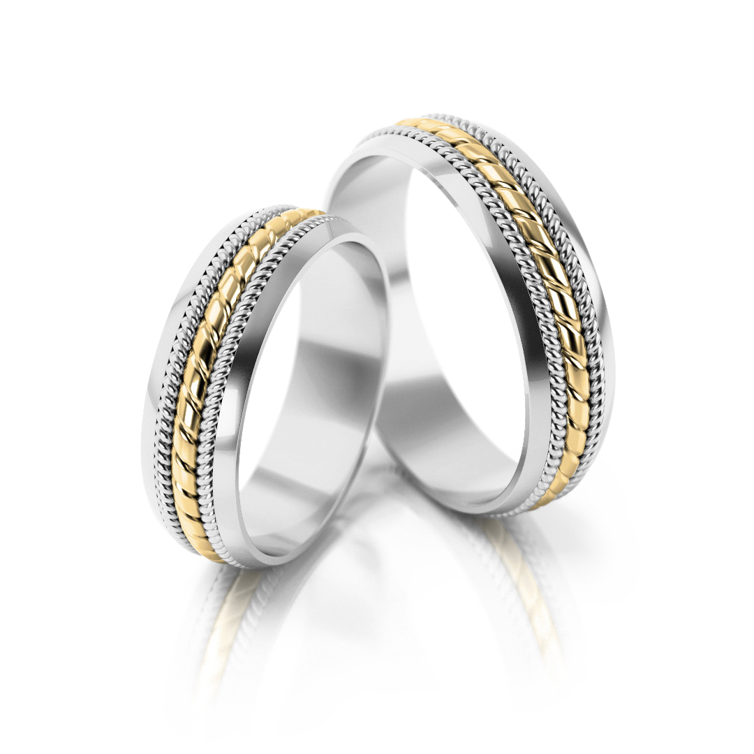 Dviejų spalvų vestuviniai žiedai su pynės raštu (5.5 mm)