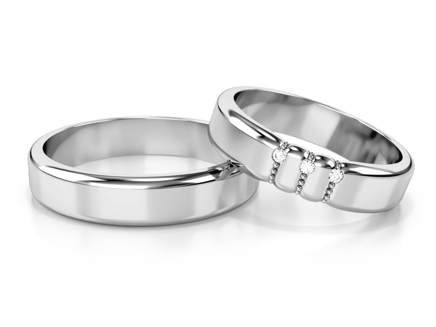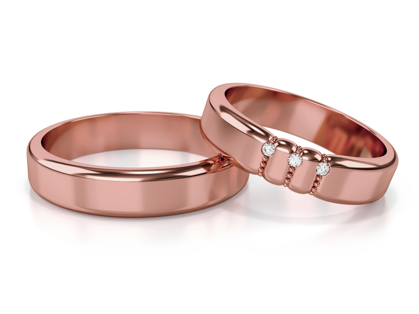Vestuviniai žiedai – geltonas auksas su trimis deimantais, 4.5 mm pločio