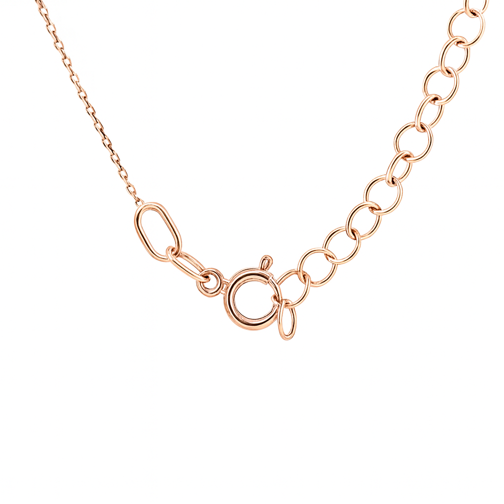Subtilus, klasikinis ir spindintis – šis 14K (585 prabos) raudono aukso pakabukas su deimantais simbolizuoja šviesą, tikėjimą ir amžinybę. Kryželio formos pakabukas puoštas 0.10 ct natūraliais deimantais (SI2 H), kurių spindesys išryškina aukso šilumą ir elegantiškumą.